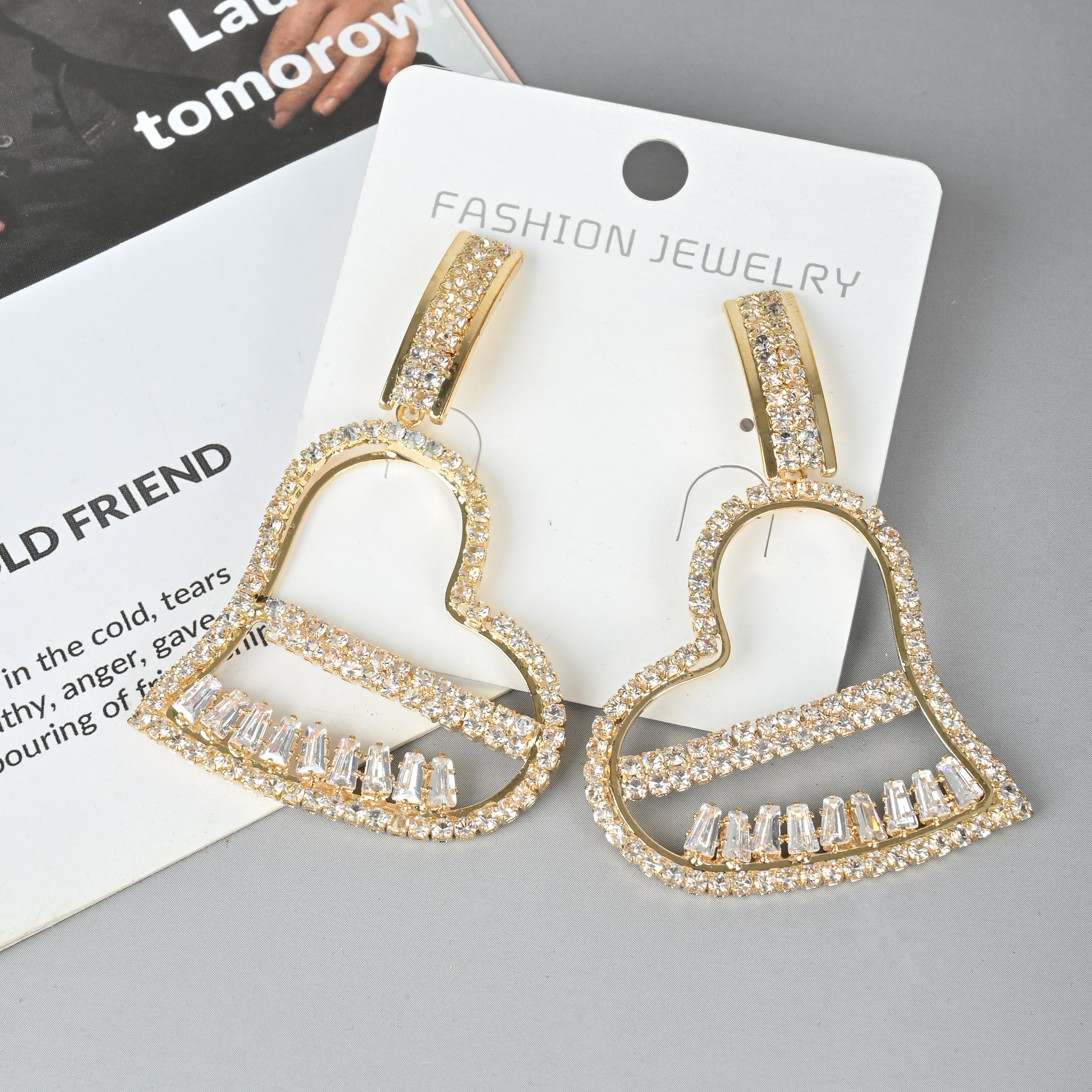 Europe And The United States Fashion Exaggerated Double Love Earrings Temperament Everything Long Heart Earrings